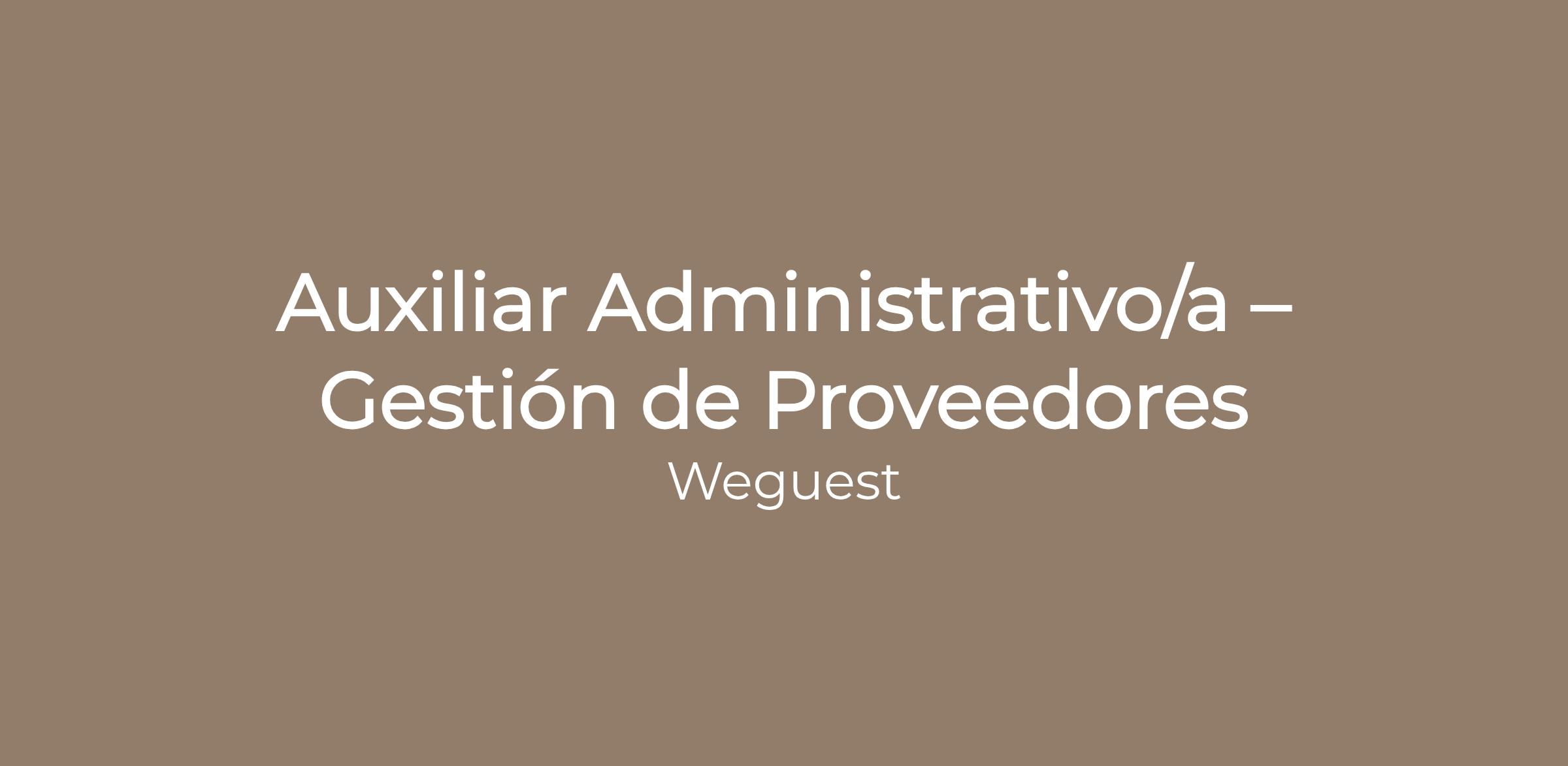 En Weguest, estamos buscando un/a Auxiliar Administrativo/a, con especial enfoque en la gestión de proveedores, para unirse a nuestro equipo de Quality.