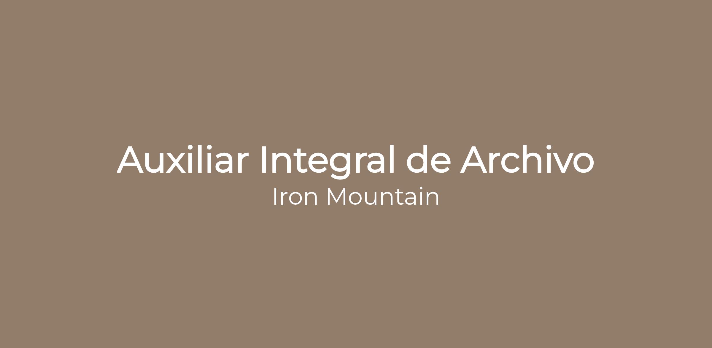 Iron Mountain busca un Auxiliar Integral de Archivo experto y orientado al detalle para unirse a nuestro equipo de Data Entry.