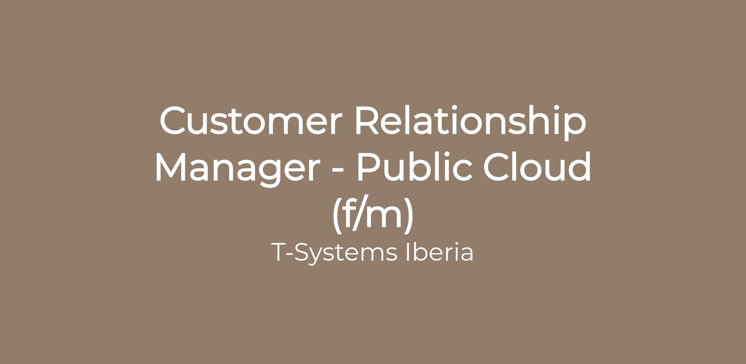 We are looking for a strategic and customer-focused Customer Relationship Manager to act as the trusted advisor for our clients leveraging Public Cloud solutions.