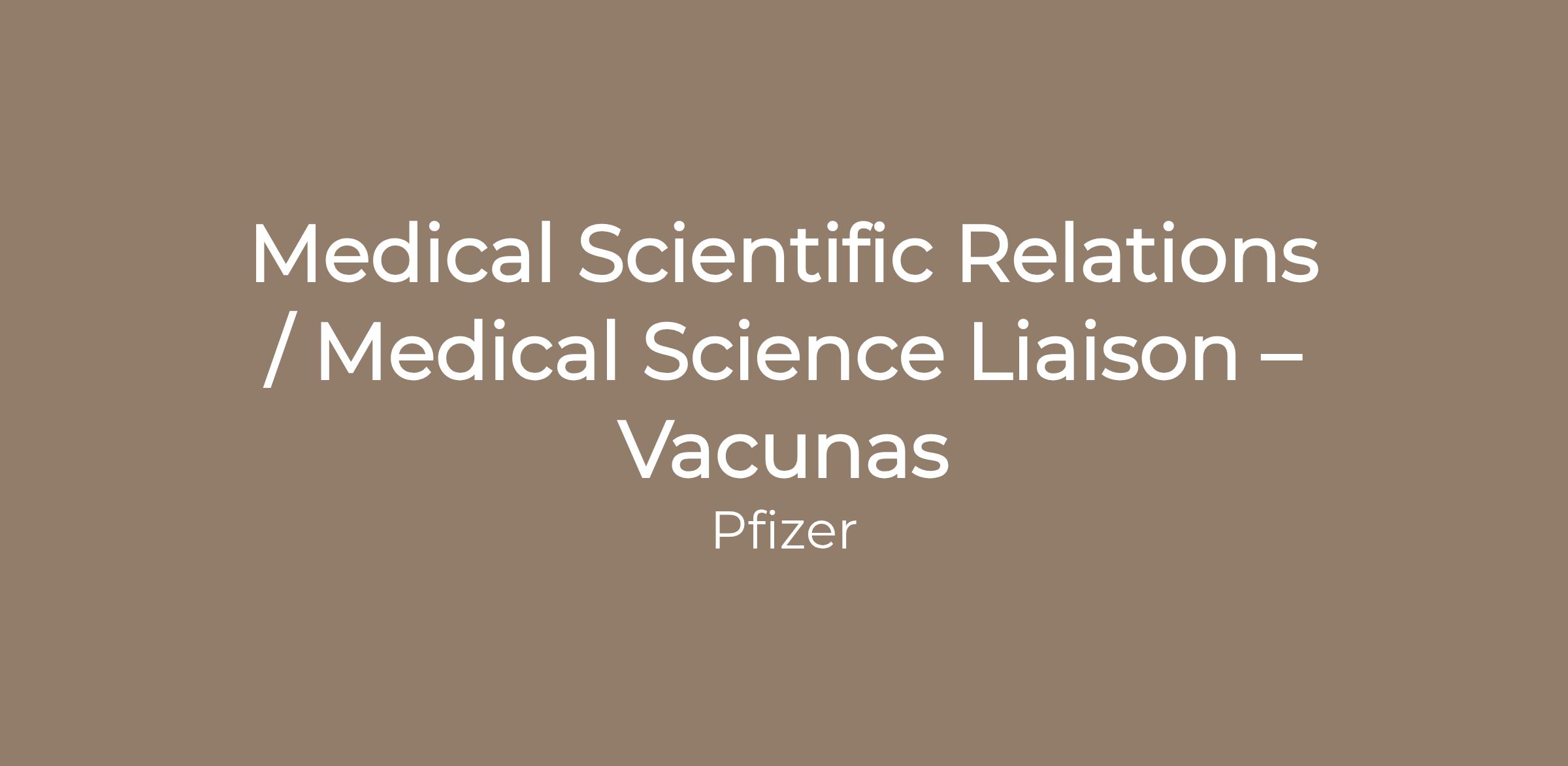 Medical Scientific Relations (MSR) / Medical Science Liaison (MSL) para incorporarse al equipo de Medical Affairs de Vacunas de Pfizer.