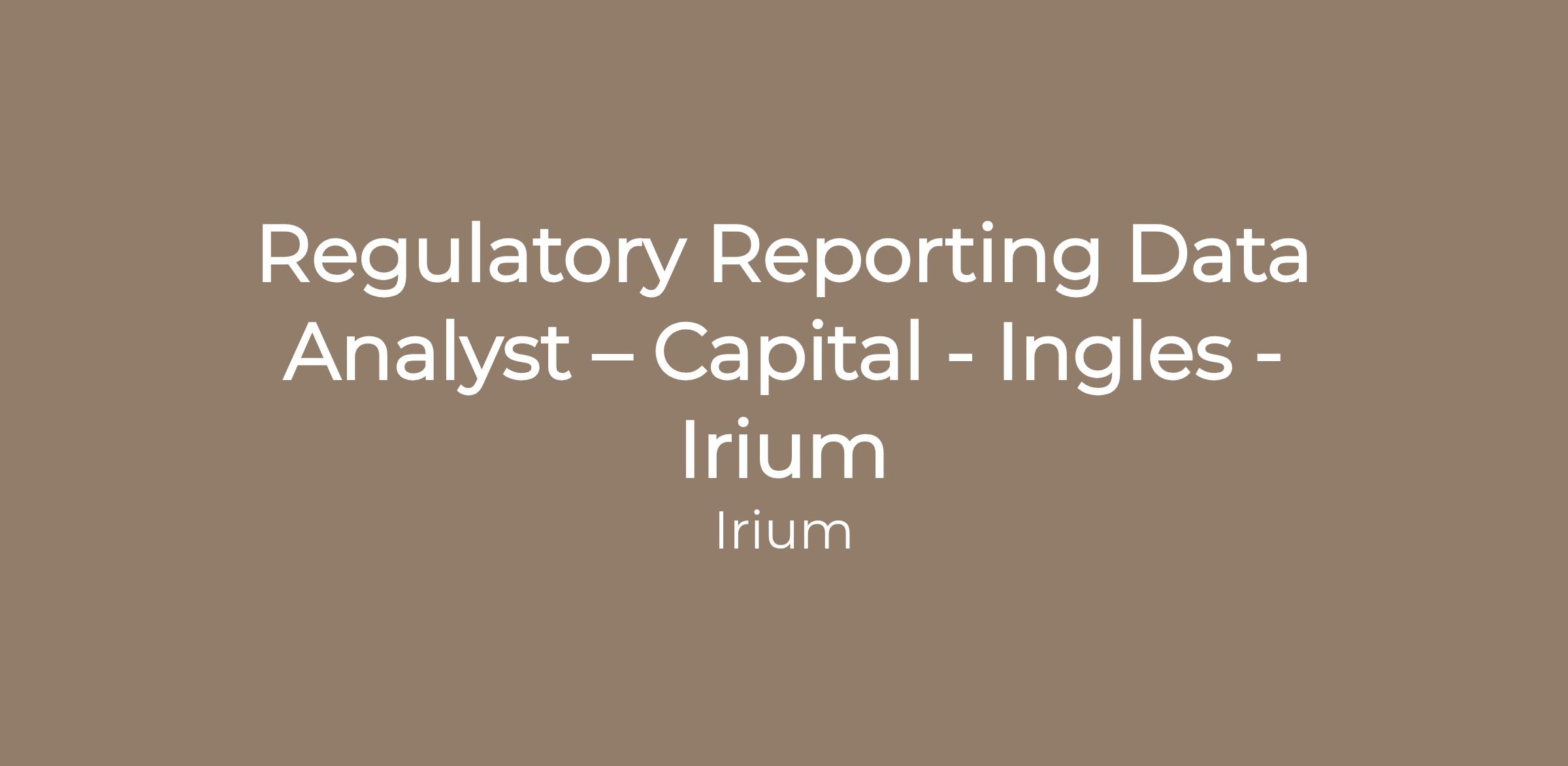 Regulatory Reporting Data Analyst – Capital - Ingles - Irium