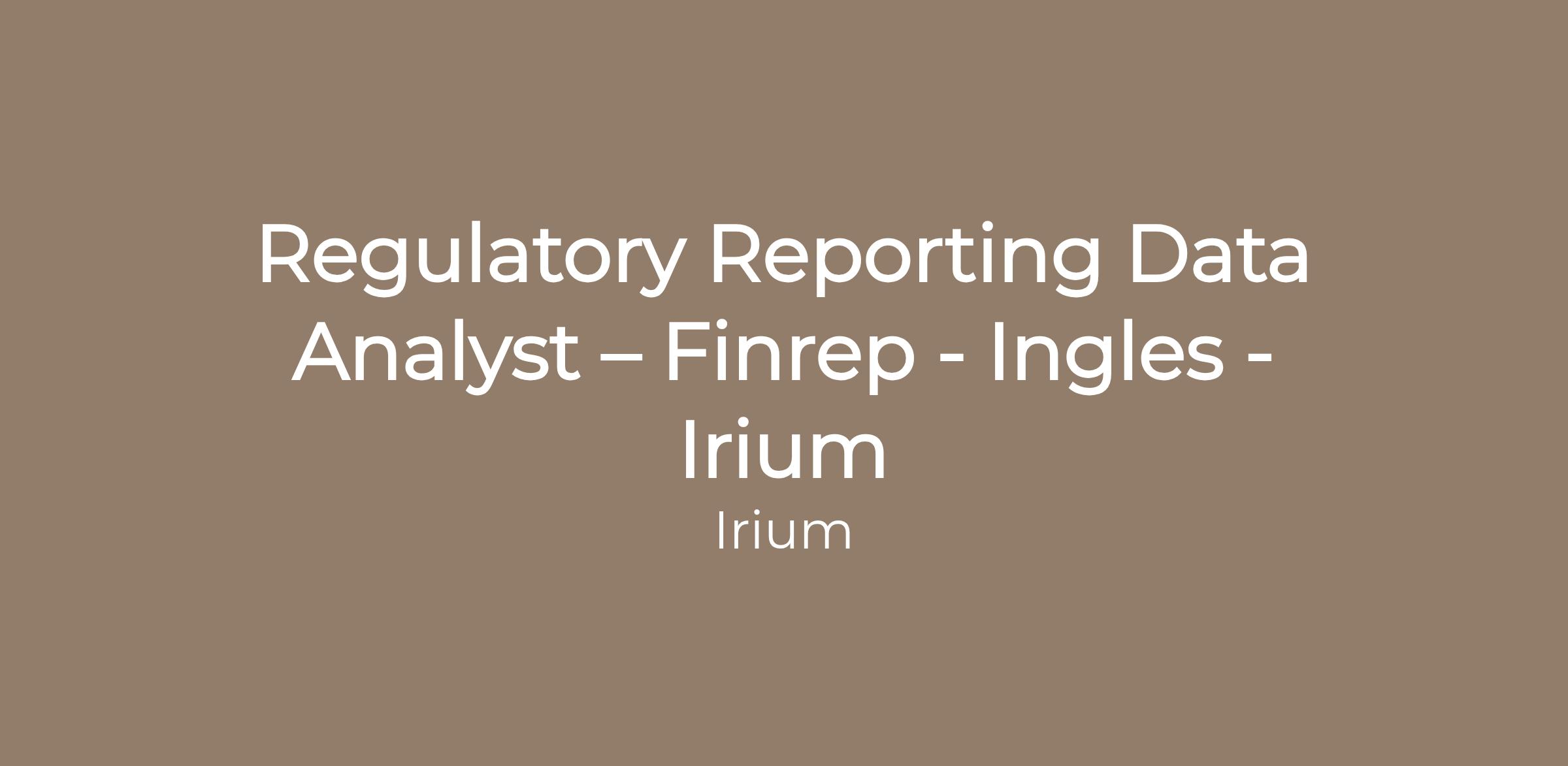 Regulatory Reporting Data Analyst – Finrep - Ingles - Irium